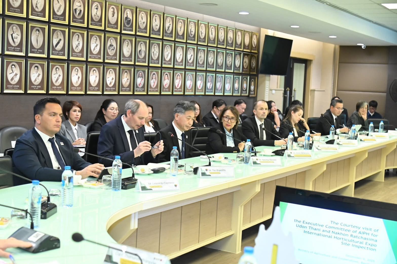 จากการเข้าเยี่ยมคารวะ รองนายกรัฐมนตรี และรัฐมนตรีว่าการกระทรวงเกษตรและสหกรณ์ ได้หารือร่วมกับคณะกรรมการสมาคมพืชสวนระหว่างประเทศ หรือ AIPH (The International Association of Horticultural Producers – AIPH) นำโดย Mr. Leonardo Capitanio ประธาน AIPH และปลัดกระทรวงเกษตรและสหกรณ์ รับฟังความก้าวหน้าในครั้งนี้ด้วย การหารือครั้งนี้ยังครอบคลุมการเตรียมการจัดงานมหกรรมพืชสวนโลกเพื่อส่งเสริมการพัฒนาโลกสีเขียวแห่งอนาคต นวัตกรรมด้านพืชสวน และการเกษตร และการพัฒนาอย่างยั่งยืนตามแนวทาง SDGs