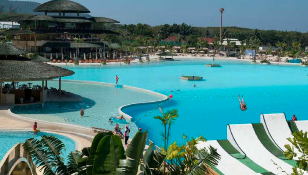 สวนน้ำและศูนย์รวมความบันเทิงบนพื้นที่ 140 ไร่ โดดเด่นด้วย บลุทรีลากูน มหาสมุทรสีฟ้าใสล้อมรอบด้วยชายหาดเทียมและมีกิจกรรมมากมาย อาทิ ฟลายบอร์ด ซิปไลน์ สไลเดอร์ยักษ์ สแปลซโซน กิจกรรมไต่หน้าผา ฟิตเทรล รวมถึงกีฬาทาวน้ำ ฟิตเนส ร้านค้า ร้านอาหารและบีชคลับขนาดใหญ่ ที่รองรับการจัดประชุมและงานเลี้ยงในบรรยากาศ
