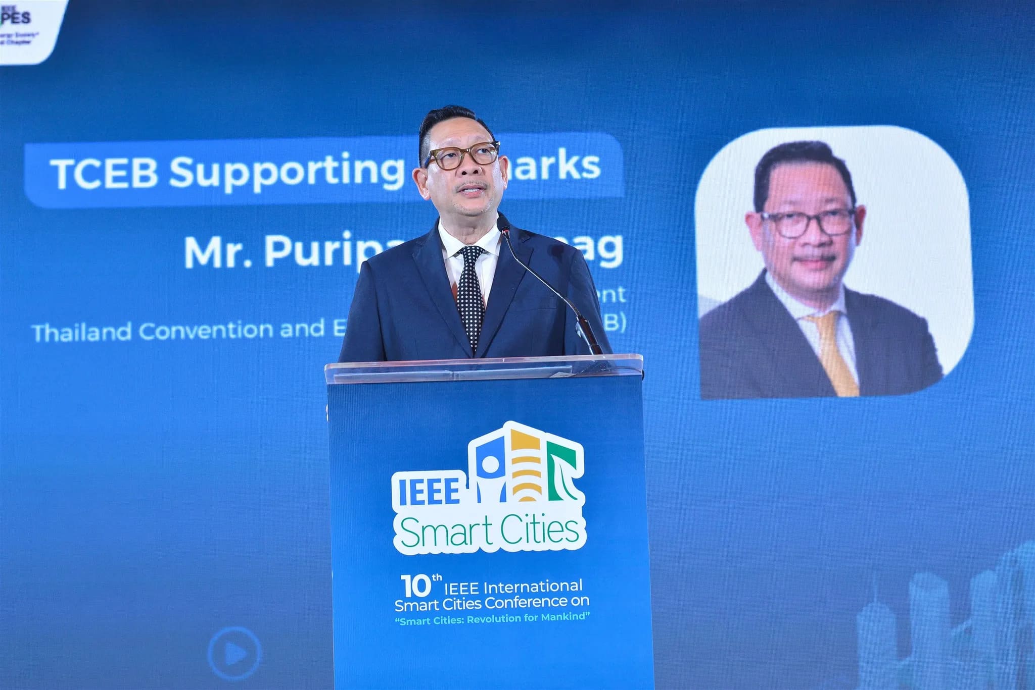 On 30 October, TCEB, led by Senior Vice President Mr. Puripan Bunnag, attended the opening ceremony of the 10th IEEE International Smart Cities Conference (IEEE ISC2 2024) at the Royal Cliff Grand Hotel in Pattaya, Chonburi. This conference was secured for Thailand by IEEE Power & Energy Society – Thailand with assistance from TCEB. It marked the first time the IEEE Smart Cities Conference was held in Thailand and the ASEAN region.